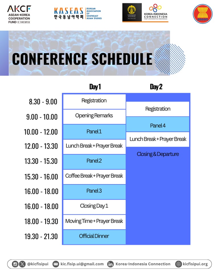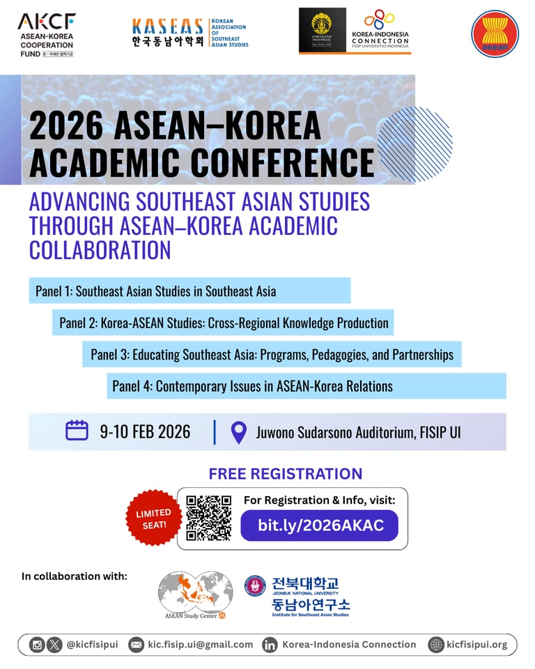 The 2026 ASEAN–Korea Academic Conference is designed as a flagship scholarly forum under the AKPGM (ASEAN–Korea Platform for Great Minds) initiative. The conference aims to bring together scholars from ASEAN Member States and the Republic of Korea to reflect on the state of Southeast Asian Studies, promote cross-regional knowledge production, and foster sustainable academic partnerships. By providing space for both senior scholars and emerging researchers, the conference seeks to strengthen regional expertise and cultivate future Southeast Asianists who can contribute to ASEAN community-building and ASEAN–Korea cooperation.