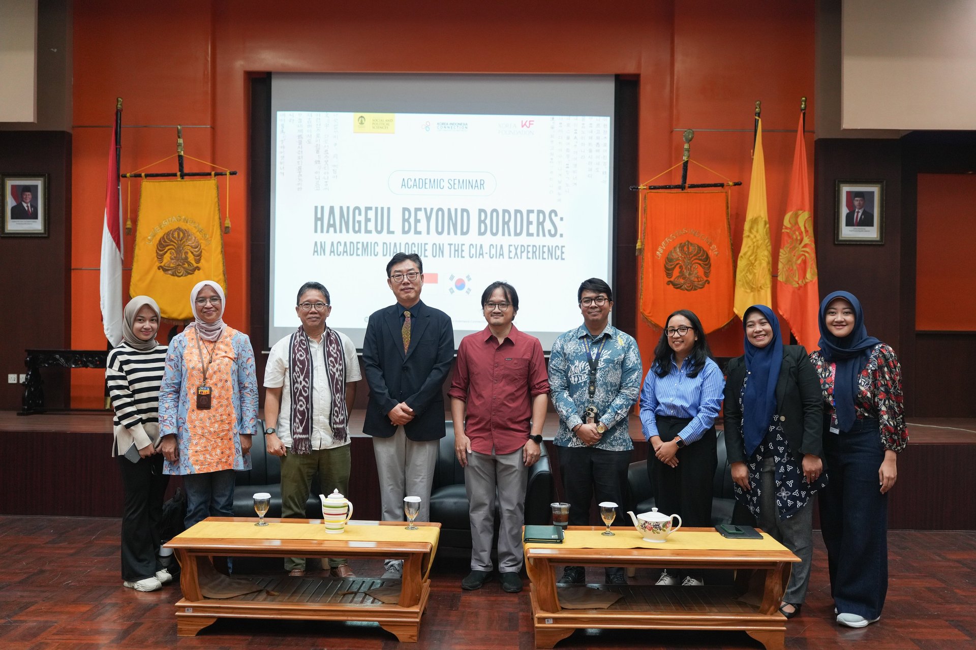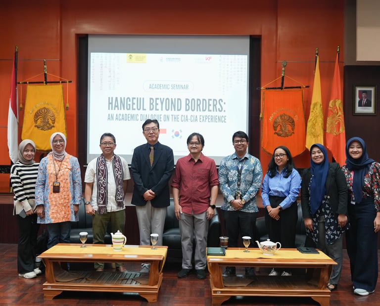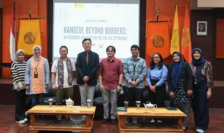 An academic seminar that examines the adoption of Hangeul by the Cia-Cia community in Bau-Bau as a case of linguistic preservation and cultural diplomacy, bringing together scholars, journalists, and students to explore its implications for intercultural exchange, media representation, and Indonesia–Korea relations.
