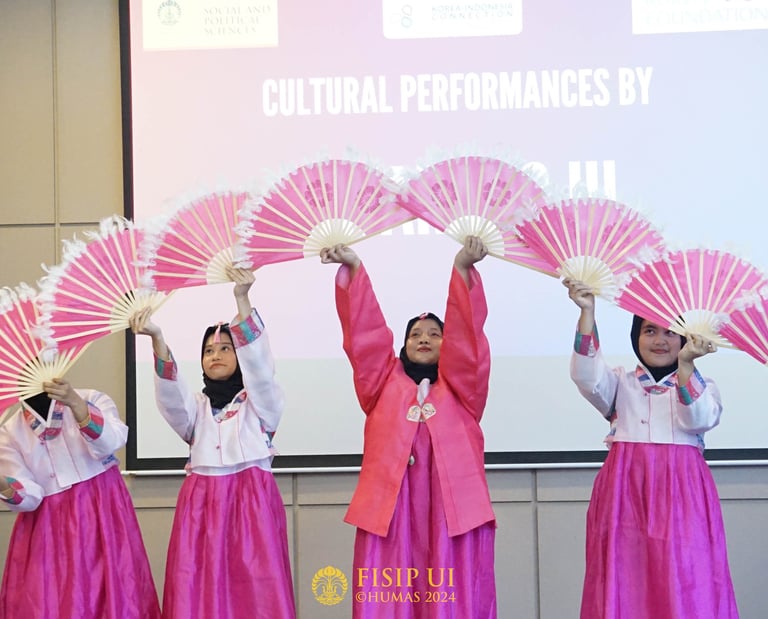 The Indonesia–Korea Sociocultural Exchange Fair, organized by KIC FISIP UI in collaboration with FIB UI and BEM FISIP UI, marked the closing event of KIC’s 2024 program series. Featuring a public lecture on educational diplomacy and a talk show on globalization and youth culture, the fair also included side events such as an education showcase, cultural bazaar, and networking activities. This event celebrated academic and cultural collaboration, reinforcing KIC FISIP UI’s mission to strengthen mutual understanding and partnership between Indonesia and South Korea.