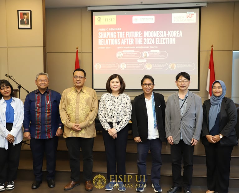 A collaborative seminar by FISIP UI and the Korea Foundation Jakarta through KIC FISIP UI, discussing the future of Indonesia–Korea relations after the 2024 election. Featuring experts from Seoul National University, The Habibie Center, and Indonesia’s Ministry of Foreign Affairs, the event strengthened academic, cultural, and diplomatic ties between the two nations.