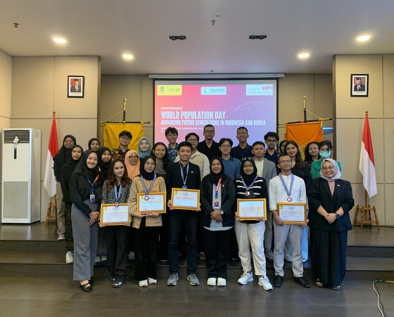 An international academic conference by KIC FISIP UI and the Korea Foundation Jakarta, held to commemorate World Population Day. The event featured essay presentations from students across Indonesia and abroad, exploring key themes on health, environment, economy, and equality in Indonesia–Korea relations. Through scholarly dialogue and collaboration, the conference aimed to foster innovative ideas and strengthen academic and cultural ties between the two nations.