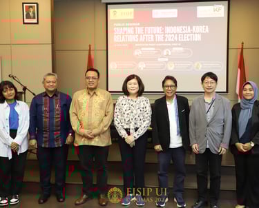 A collaborative seminar by FISIP UI and the Korea Foundation Jakarta through KIC FISIP UI, discussing the future of Indonesia–Korea relations after the 2024 election. Featuring experts from Seoul National University, The Habibie Center, and Indonesia’s Ministry of Foreign Affairs, the event strengthened academic, cultural, and diplomatic ties between the two nations.