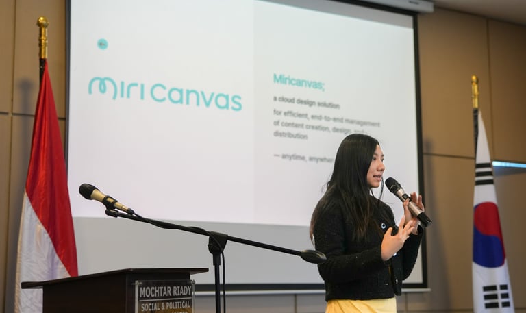 KIC FISIP UI, in collaboration with MiriCanvas Indonesia, officially launched the Korea-Indonesia Young Creatives Competition (KIYCC) on June 10, 2025. The program empowers high school and university students to express cross-cultural ideas through digital design. Featuring a MiriCanvas Mini Workshop and a short lecture on gastrodiplomacy and glocalization, the event highlighted creativity as a bridge between Indonesia and Korea.